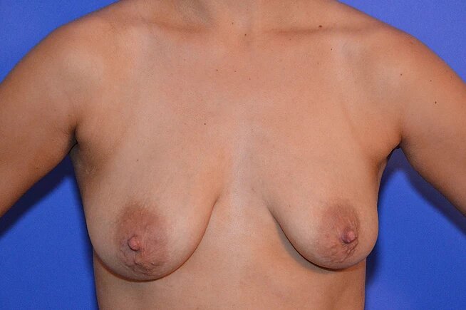 27 year-old mother of two; 5’5” tall, weighing 130 lbs. Patient desired an increased breast volume and a more youthful position and reduction of her areolas. Dr. Armijo performed a single stage, “lollipop” mastopexy and used 415cc Inspira Full Profile Silicone Gel Implants with sub-muscular placement in order to achieve patient’s desired look.
