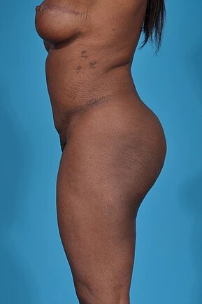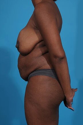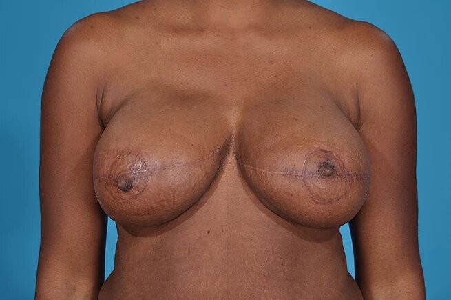 35 year-old mother of two. 5’6” tall, weighing 168 lbs. Immediately following her bilateral mastectomy, Dr. Armijo performed the first stage of breast reconstruction with the placement of tissue expanders. Once the patient was expanded to her desired size, Dr. Armijo performed a bilateral DIEP flap procedure, using the skin and fat from her tummy to reconstruct her breasts. Dr. Armijo then reconstructed her nipples and placed 435cc Moderate Plus Silicone Gel Implants to achieve a fuller look.
