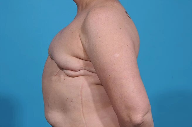 52-year-old female. 5’1” tall, weighing 150 lbs. Patient had started breast reconstruction with another plastic surgeon but after several infections, chemotherapy and radiation, came to Dr. Armijo for a second opinion. Dr. Armijo performed a bilateral DIEP flap procedure, using the skin and fat from her tummy to reconstruct her breasts. The patient then received 3-D tattooing to complete her reconstruction.